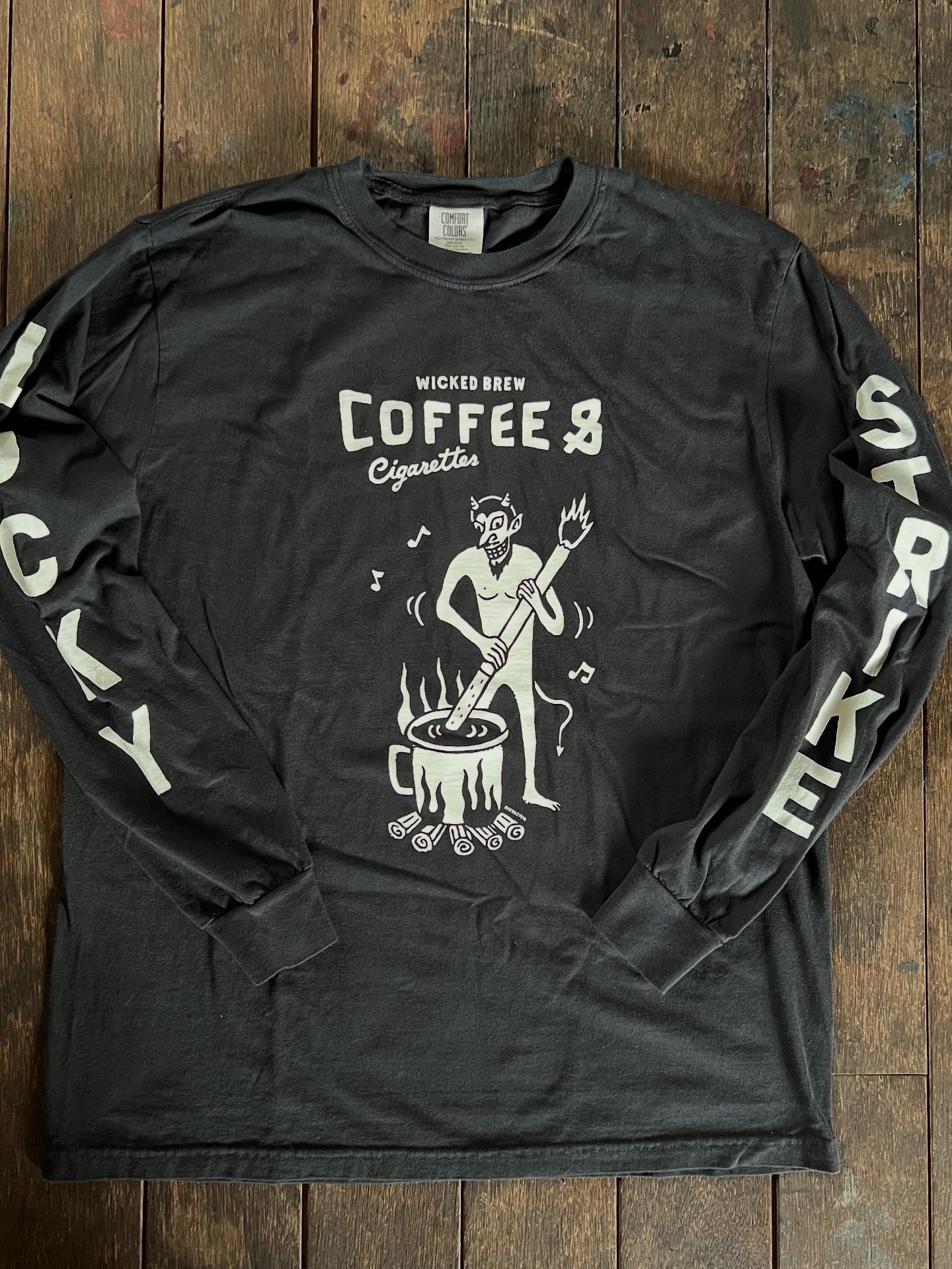 Lucky Devilの好きな言葉は19世紀のゴールドラッシュ時代に金鉱を掘り当てた鉱夫が口にしたスラング、”大当たり!”のLUCKY STRIKE!。 その他、幸運が訪れることや物事がうまくいくことを指す言葉を両袖に。